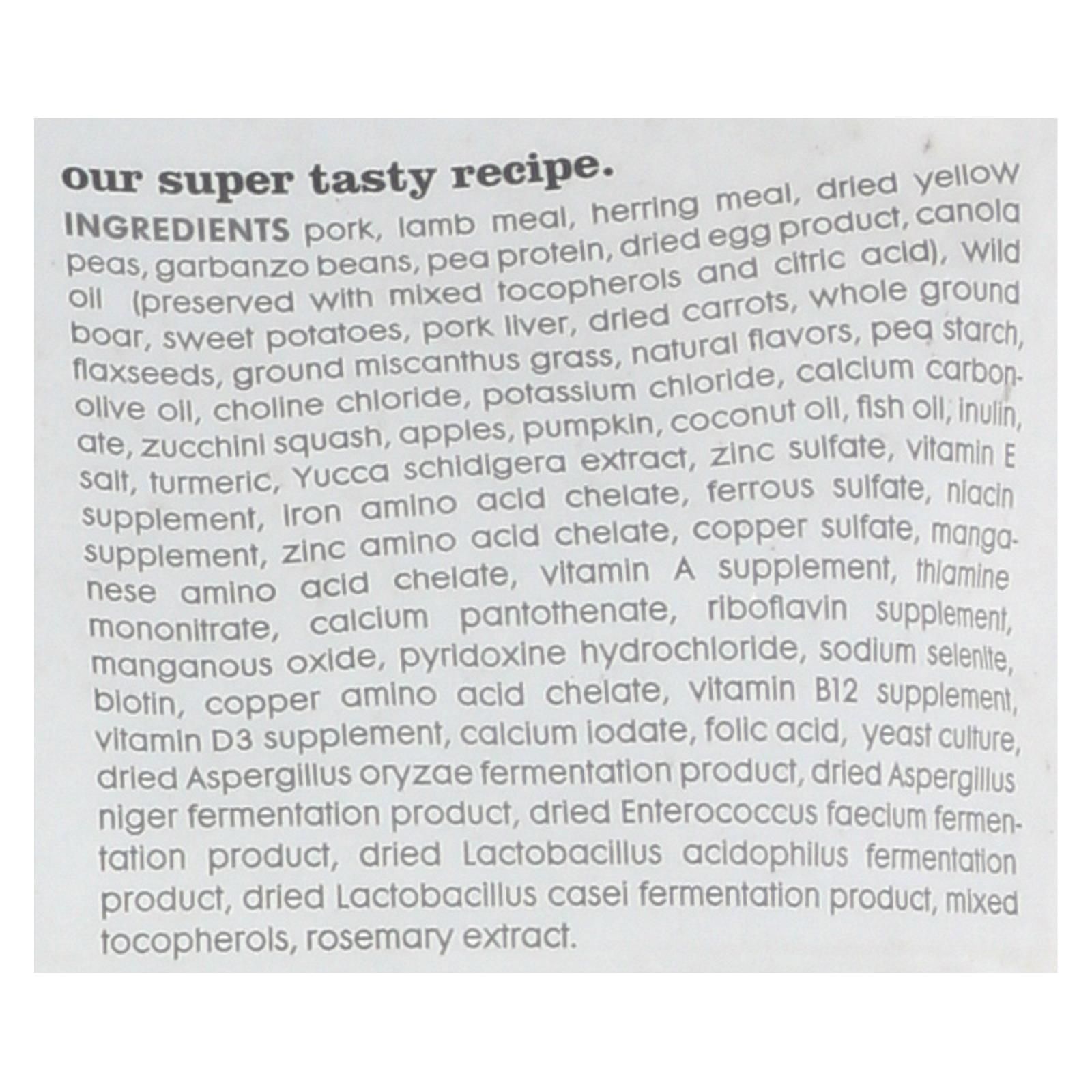 • Real Red Meat First: Made with pork and wild boar as the primary proteins for a savory, nutrient-dense meal.