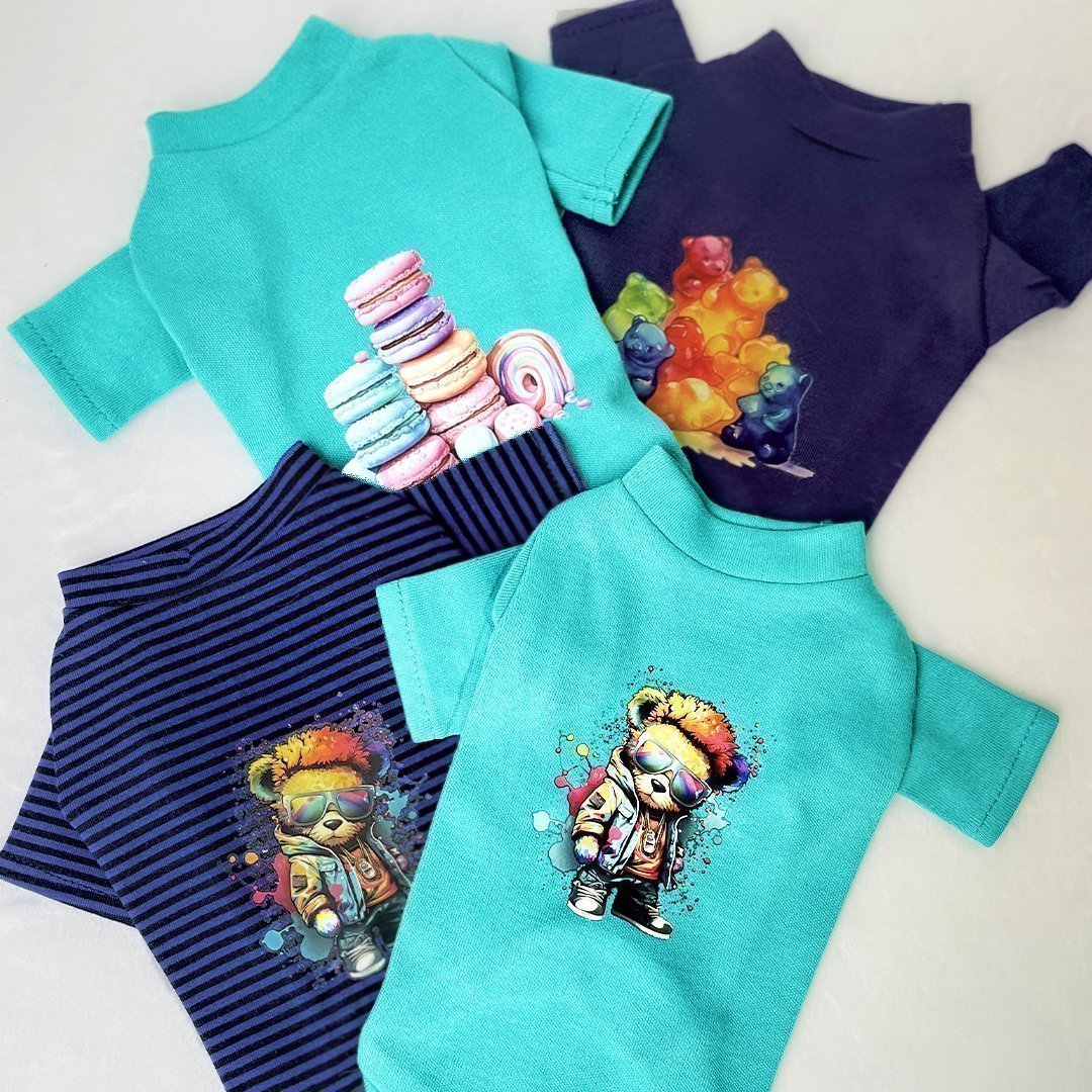 Introducing the Macaroon Dog Tee by Hello Doggie, a delightful piece crafted from soft jersey cotton knit fabric. This tee offers a comfortable and breathable fit for your furry friend. The standout feature of this tee is the adorable macaroon cluster appliqué, adding a touch of adding a touch of sweetness to the design. Treat your pup to a stylish and comfortable look with this Macaroon Dog Tee, perfect for everyday wear and showcasing your pet's fun personality. Make a sweet statement with this playful and cozy tee that is sure to become a favorite in your pet's wardrobe. Wash on gentle cycle in cold water, no bleach or softner and air dry or tumble on low.  Sizes | XXS – LG   MSRP $ 28.00 *Tees are handmade and sizes may vary slightly. Made in USA.